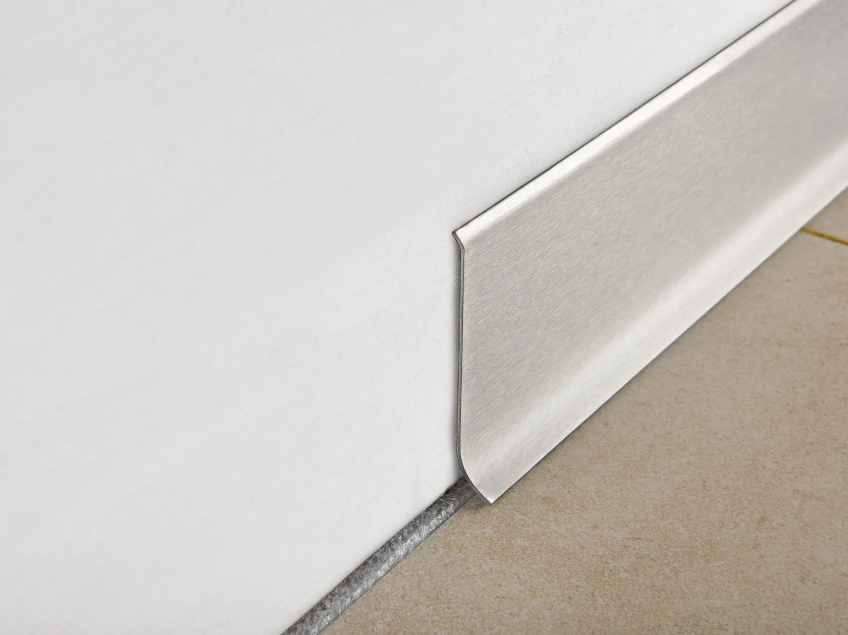 Plinta simpla si eleganta fabricata din inox, compatibila cu toate tipurile de finisaj pentru pardoseli (ceramica, parchet, mocheta, pvc, epoxy), reprezinta o solutie eleganta de finisare si protectie a imbinarii dintre pardoseala si perete, precum si de mascare a rostului de dilatatie dintre pardoseala si perete.