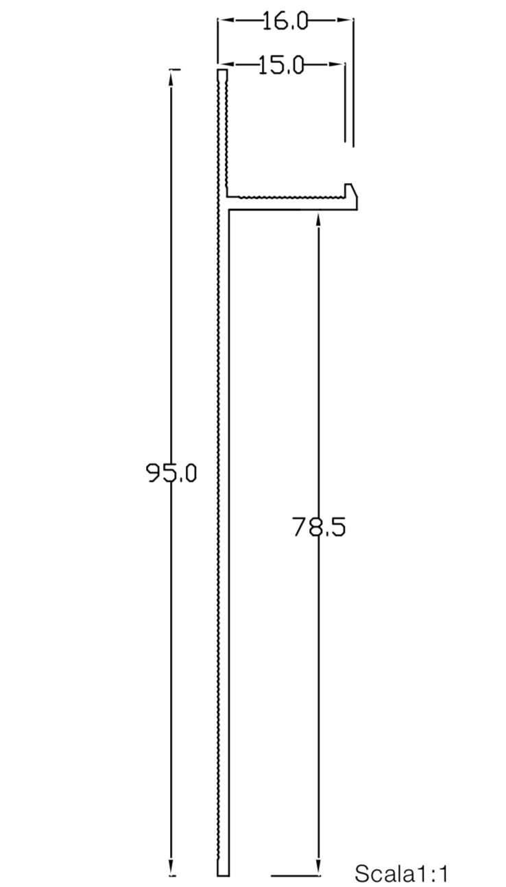 Plinta retrasa din aluminiu cu montaj prin lipire/fixare mecanica Alluwall 95×16